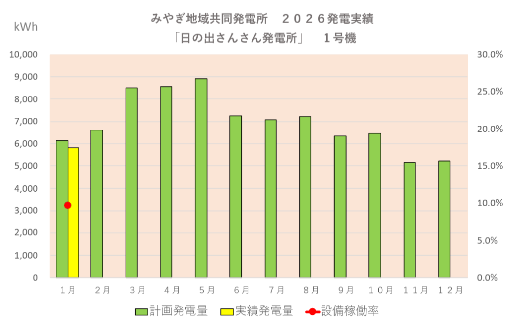 みやぎ地域協同発電所第1号ソーラーの今期の発電実績は以下のとおりです。